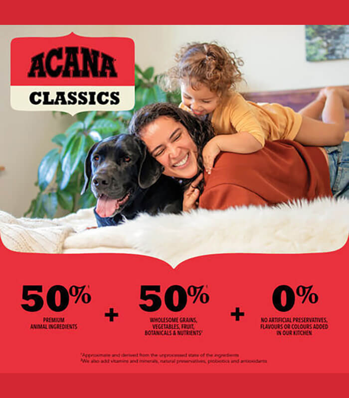 ACANA je brend hrane za pse i mačke kompanije Champion Petfoods iz Kanade, poznat po formulacijama koje se zasnivaju na visokim udelima životinjskih sastojaka i nutritivnom pristupu usklađenom sa prirodnim potrebama ljubimaca. Recepture ACANA hrane razvijene su tako da obezbede kvalitetan izvor proteina iz mesa, ribe i drugih životinjskih sastojaka, uz ograničen udeo ugljenih hidrata. U zavisnosti od proizvoda, formule mogu biti bez žitarica i bazirane na tzv. WholePrey konceptu, koji uključuje meso, organe i hrskavicu u prirodnim odnosima. Proizvodnja se odvija u kontrolisanim uslovima, sa fokusom na sledljivost sastojaka i standardizovan proces pripreme hrane. ACANA linije obuhvataju različite recepture prilagođene starosti, veličini i specifičnim potrebama pasa i mačaka.