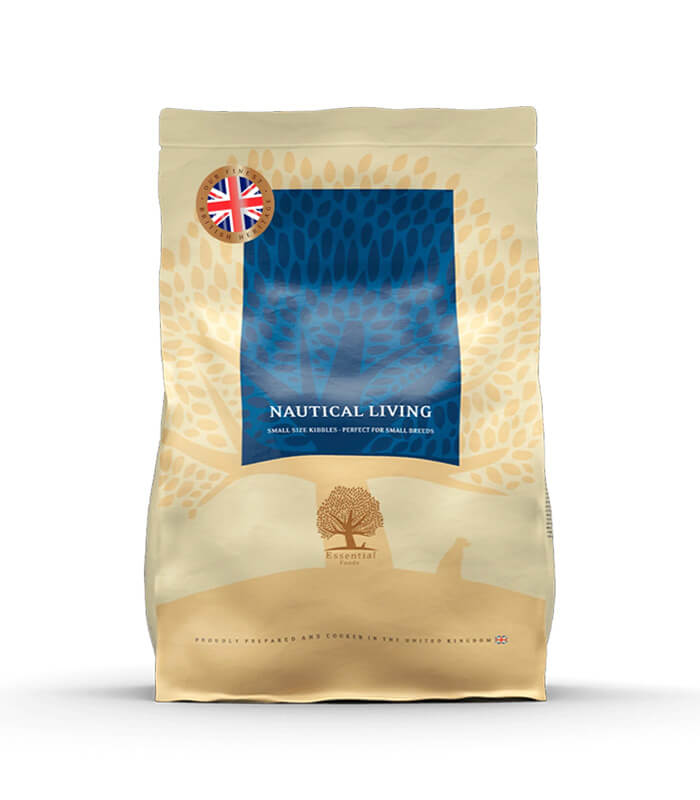 ESSENTIAL FOODS Nautical Living Small Breed su kompletne grain free granule namenjene odraslim psima malih rasa sa umerenim nivoom aktivnosti. Receptura iz linije British Heritage Kitchens priprema se sa obilnim količinama svežeg škotskog lososa, pastrmke i pažljivo odabrane sezonske ribe, uz dodatak karakteristične mešavine bobičastog voća i aromatičnog bilja. Proizvod je prirodno bogat omega-3 masnim kiselinama, ne sadrži piletinu i razvijen je u skladu sa nutritivnim konceptom BOF – Behavioural Optimizing Foods.