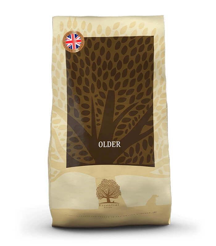 ESSENTIAL FOODS Older Large Breed su kompletne grain free granule namenjene starijim psima velikih rasa. Receptura iz linije British Heritage Kitchens razvijena je za pse u zrelijem životnom dobu i sadrži pažljivo odabrane sastojke uključujući britansku piletinu iz slobodnog uzgoja, patku, škotski losos i svežu pastrmku. Formula je dodatno obogaćena mešavinom bobičastog voća i aromatičnog bilja, uz nutritivni profil prilagođen svakodnevnoj ishrani senior pasa.