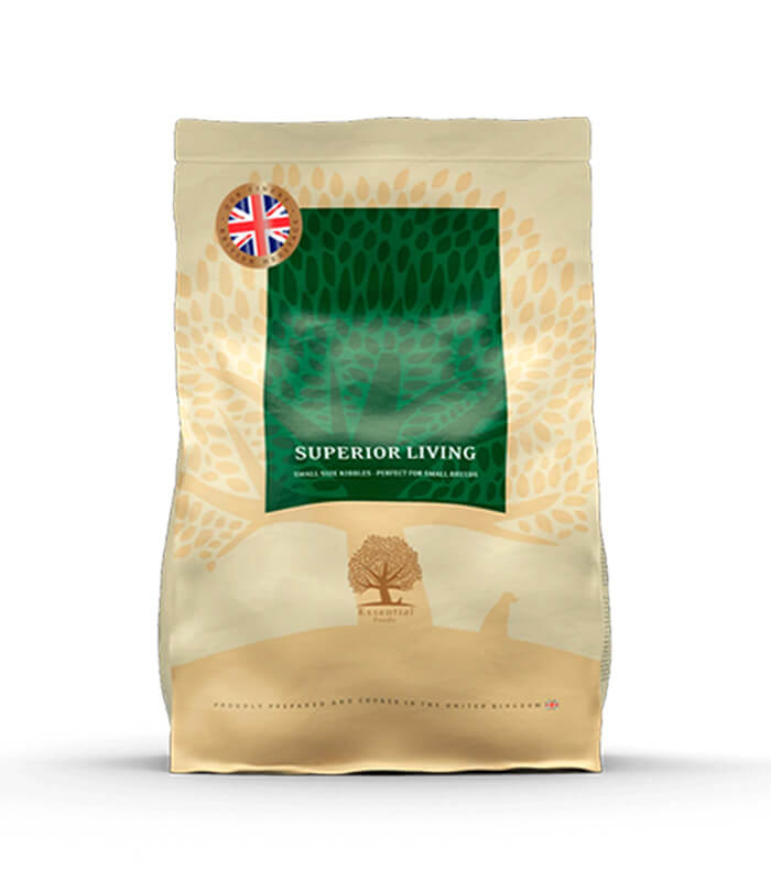 ESSENTIAL FOODS Superior Living Small Breed su kompletne grain free granule namenjene odraslim psima malih rasa sa umerenim nivoom aktivnosti. Obrok se priprema u okviru linije British Heritage Kitchens, sa pažljivo odabranim sastojcima uključujući britansku piletinu iz slobodnog uzgoja, patku, škotski losos i svežu pastrmku. Receptura je dodatno obogaćena karakterističnom mešavinom bobičastog voća i aromatičnog bilja.