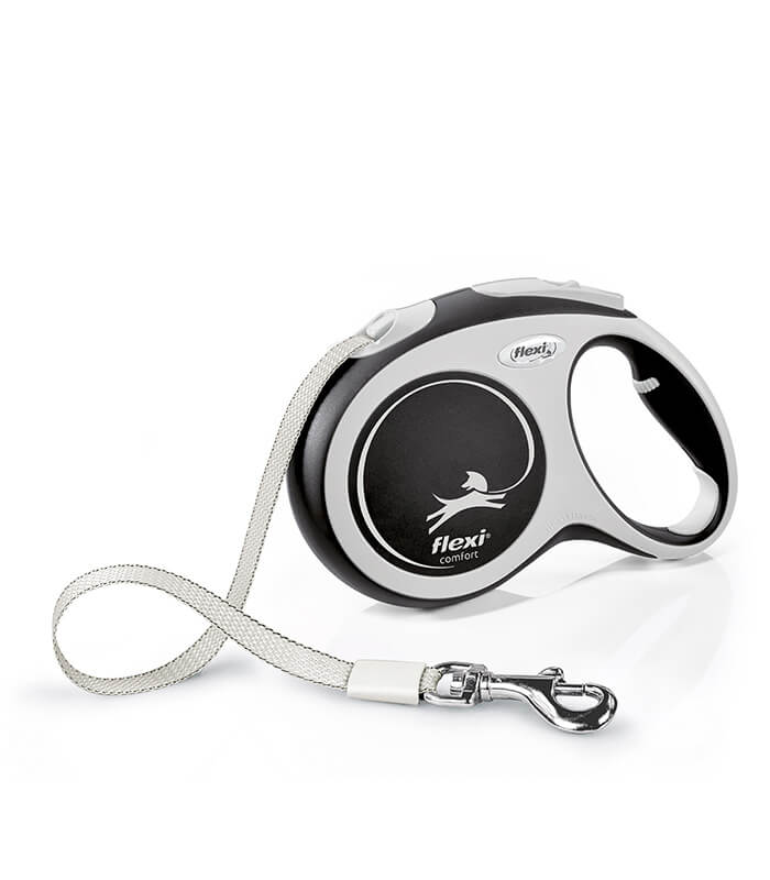 FLEXI Comfort (crni) je automatski povodac za pse sa trakom (tape), razvijen i proizveden u Nemačkoj. Comfort serija karakteristična je po ergonomskom dizajnu ručke i preciznom kočionom sistemu koji omogućava kontrolisano upravljanje dužinom tokom šetnje.