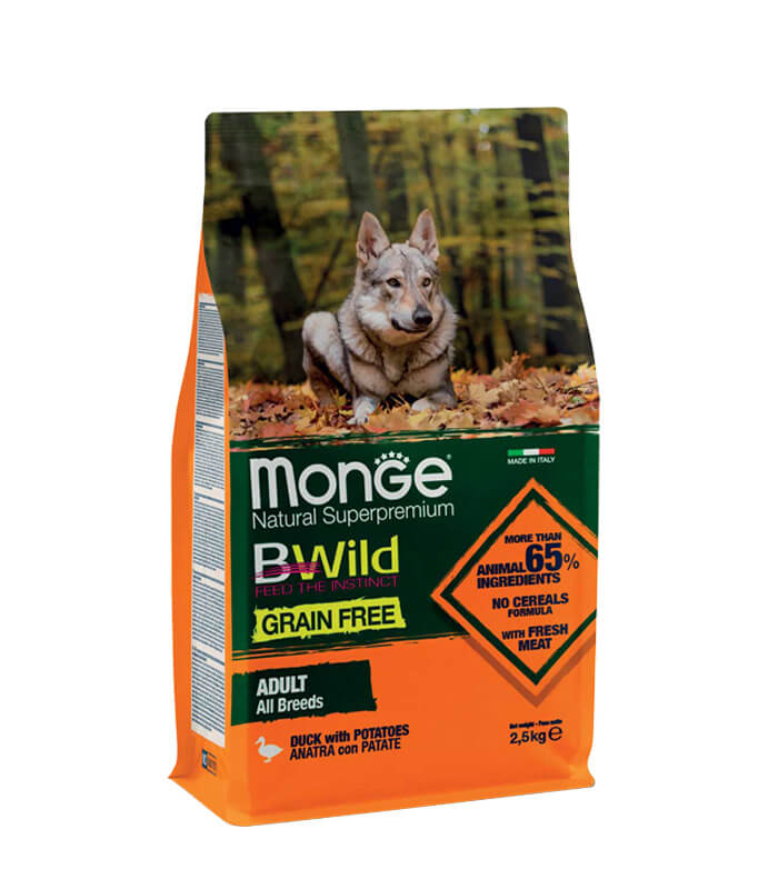 MONGE BWild Grain Free Adult Dog Duck – hrana za odrasle pse sa pačetinom (2,5kg i 12kg)