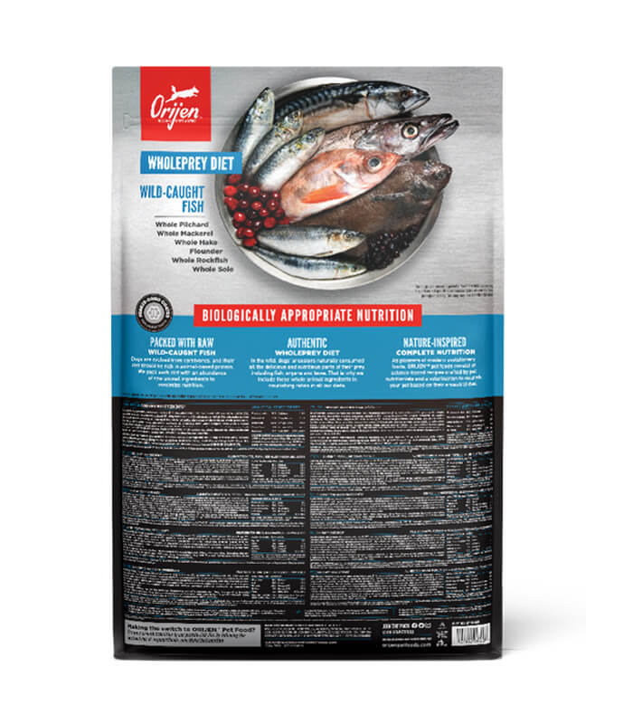 ORIJEN Six Fish je kompletna i izbalansirana hrana za pse svih rasa i uzrasta, razvijena u skladu sa principima biološki odgovarajuće ishrane (Biologically Appropriate™). Receptura se zasniva na čak 85% kvalitetnih ribljih sastojaka, uključujući svežu i sirovu ribu, uz WholePrey odnos koji obuhvata meso, organe i kosti, bez dodatka žitarica.