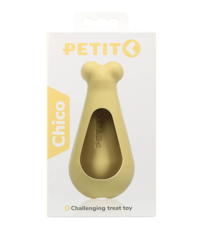 PETIT Treat Toy Chico Yellow je gumena interaktivna igračka za pse, namenjena punjenju poslasticama radi podsticanja mentalne aktivnosti i produženja igre. Konstrukcija sa centralnim otvorom omogućava postepeno ispadanje nagrade tokom kotrljanja ili žvakanja. Model je pogodan za svakodnevnu upotrebu kod pasa koji uživaju u interaktivnim i nagradnim igrama.