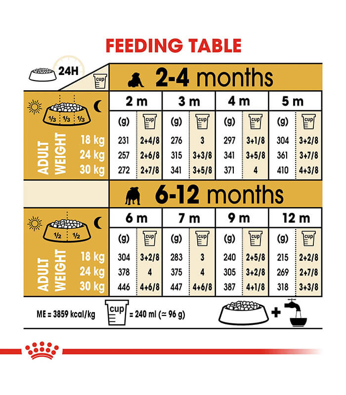 Formulacija je razvijena za rast štenaca buldoga, uz podršku razvoju imuniteta, digestivnog sistema i pravilnom razvoju kostiju i zglobova.