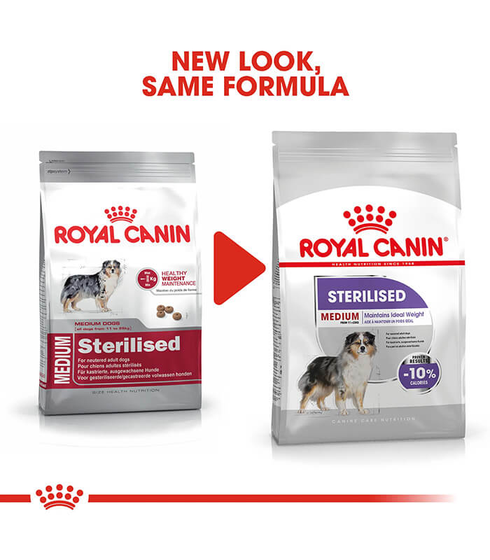 ROYAL CANIN Medium Sterilised je kompletna hrana namenjena sterilisanim odraslim psima srednjih rasa (11–25 kg) starijim od 12 meseci, sklonim gojenju.