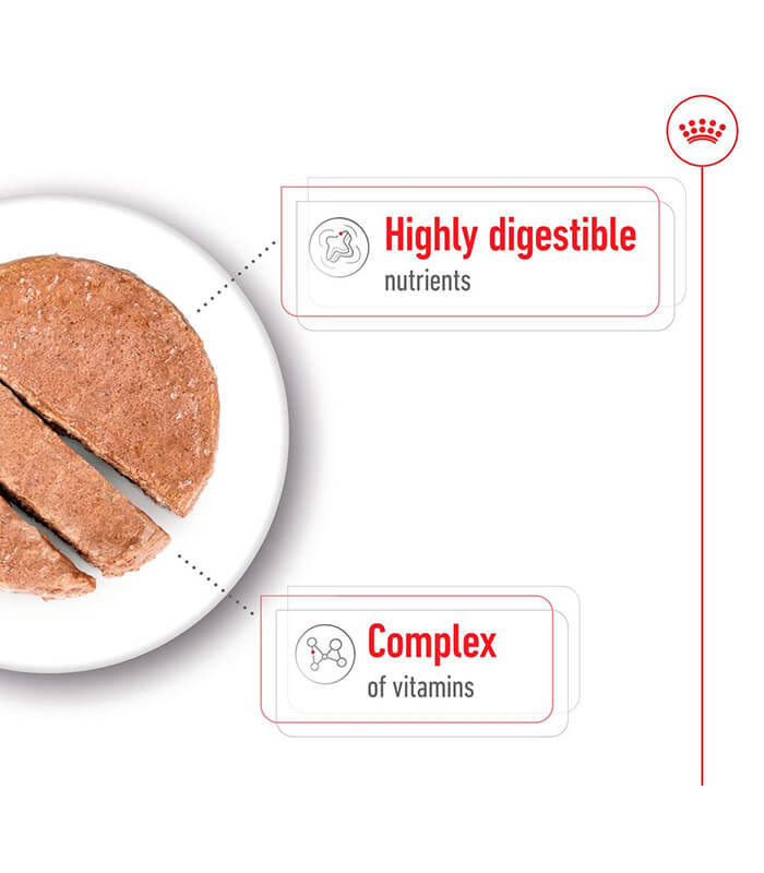 ROYAL CANIN Mini Adult Loaf je kompletna vlažna hrana namenjena odraslim psima malih rasa do 10 kg, sa formulacijom prilagođenom njihovim energetskim potrebama i načinu života.
