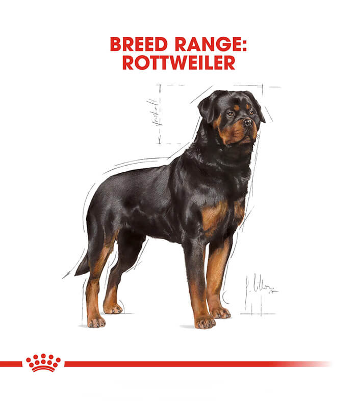 ROYAL CANIN Rottweiler Adult je kompletna hrana namenjena odraslim rotvajlerima starijim od 18 meseci, sa formulacijom prilagođenom specifičnim potrebama ove rase.