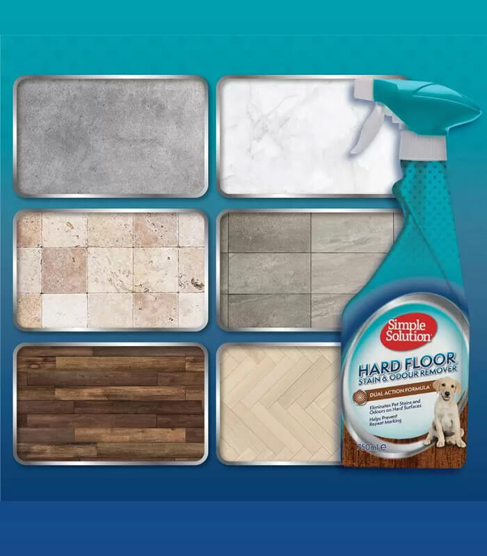 Simple Solution Hard Floor Stain & Odour Remover je enzimski čistač (sprej) za uklanjanje mrlja i neprijatnih mirisa sa tvrdih podova. Sa Pro-Bacteria™ formulom brzo razlaže organske nečistoće i pomaže u sprečavanju ponovnog obeležavanja. Pogodan za drvo, pločice, vinil i druge vodootporne površine.