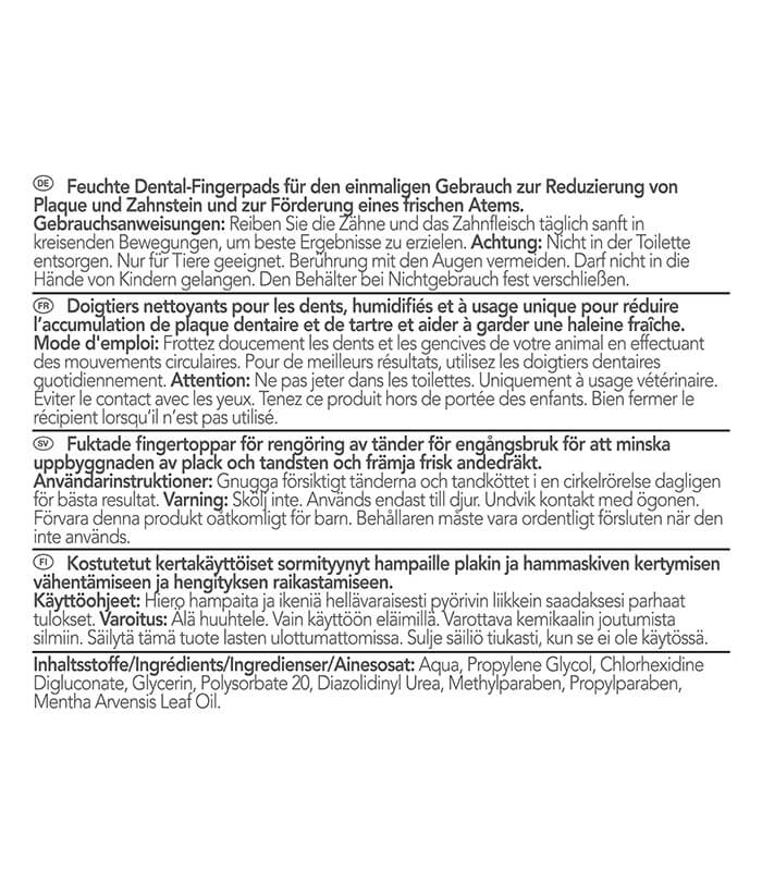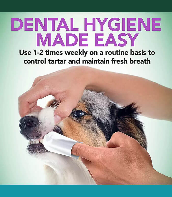 Vlažne maramice za zube za pse koje se navlače na prst, namenjene uklanjanju plaka i održavanju oralne higijene. Jednostavne i praktične za svakodnevnu upotrebu.