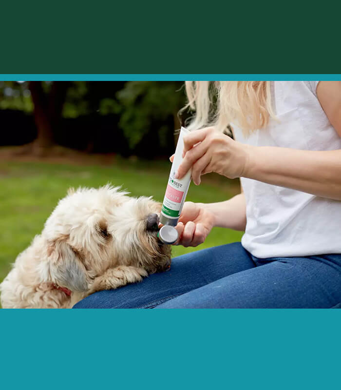 Upoznati štene sa mirisom i ukusom paste, zatim naneti malu količinu na liniju desni i nežno masirati spolja. Alternativno, naneti pastu na silikonsku četkicu za prst i masirati desni radi ublažavanja iritacije tokom zubanja. Za najbolje rezultate koristiti 3–4 puta nedeljno. Ne dozvoliti unos hrane 30 minuta pre i nakon primene. Pasta je bezbedna za gutanje i ne zahteva ispiranje.
